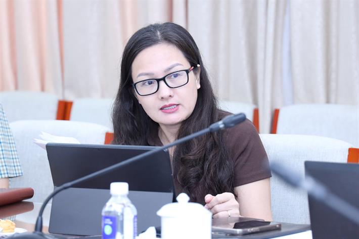 Vụ trưởng Vụ Pháp chế Mai Thị Anh trao đổi tại cuộc họp