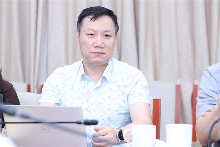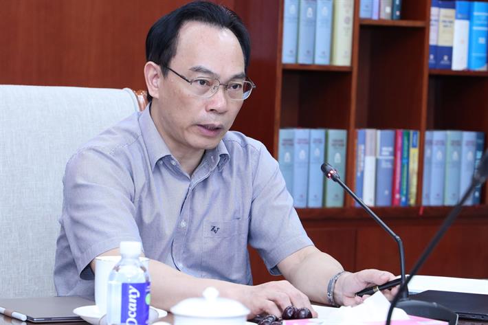 Vụ trưởng Vụ Giáo dục Đại học Nguyễn Tiến Thảo trao đổi tại cuộc họp
