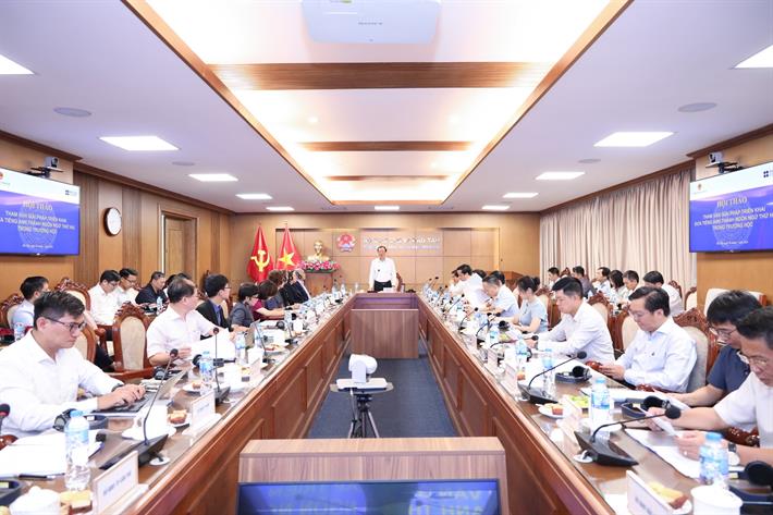 Thứ trưởng Thường trực Phạm Ngọc Thưởng cùng các đại biểu tham dự hội thảo