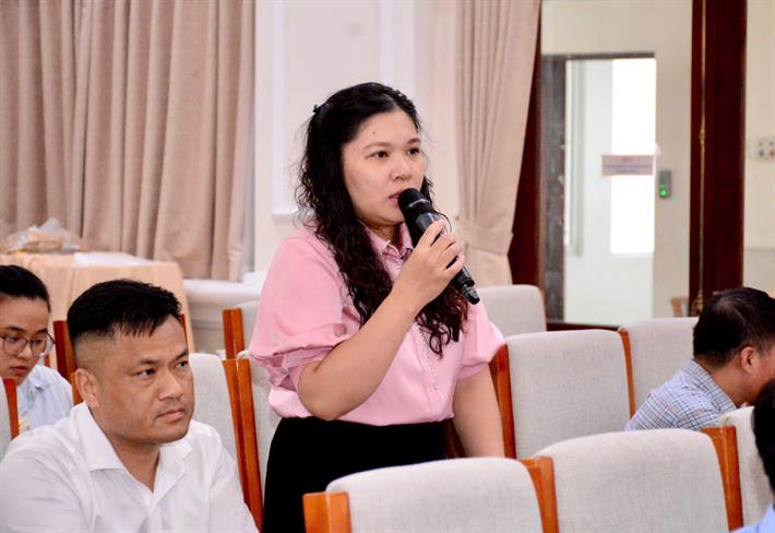 Vụ trưởng Vụ Pháp chế Mai Thị Anh báo cáo tại toạ đàm
