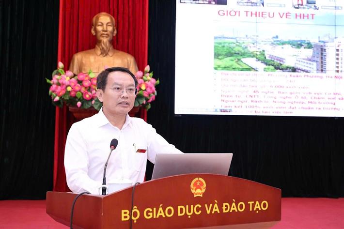 Phát biểu tại hội nghị, NGƯT.TS. Phạm Xuân Khánh, Hiệu trưởng Trường Cao đẳng Công nghệ cao Hà Nội khẳng định: Đổi mới sáng tạo và chuyển đổi số không chỉ là xu thế, mà còn là yêu cầu sống còn đối với các cơ sở giáo dục nghề nghiệp. Trường Cao đẳng Công nghệ cao Hà Nội đã chủ động chuyển mình, tích hợp công nghệ số vào toàn bộ quá trình dạy và học, từ xây dựng chương trình đào tạo linh hoạt đến phát triển hệ sinh thái học tập mở.