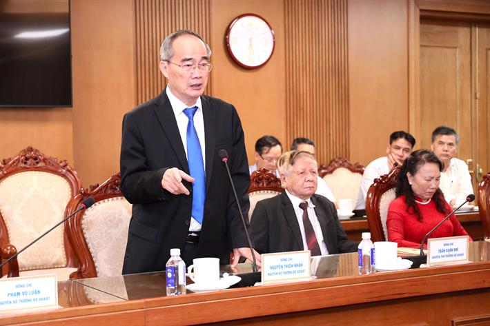 Bày tỏ niềm vui trước những kết quả đạt được của toàn ngành trong những năm qua, thay mặt các nguyên lãnh đạo Bộ, nguyên Phó Thủ tướng Chính phủ, nguyên Bộ trưởng Bộ GDĐT Nguyễn Thiện Nhân lưu ý với các lãnh đạo đương nhiệm về các vấn đề liên quan đến sửa đổi các luật, tập trung đầu tư, phát triển nguồn nhân lực chất lượng cao, phát triển khoa học công nghệ…