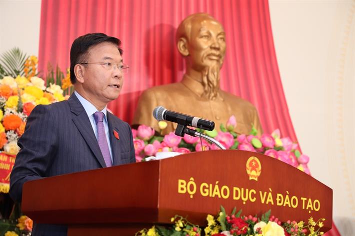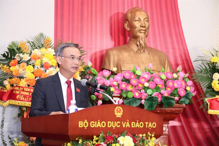 Đồng chí Nguyễn Kim Sơn, Ủy viên Ban Chấp hành Trung ương Đảng, Bí thư Đảng ủy, Bộ trưởng Bộ GDĐT, phát biểu khai mạc Đại hội