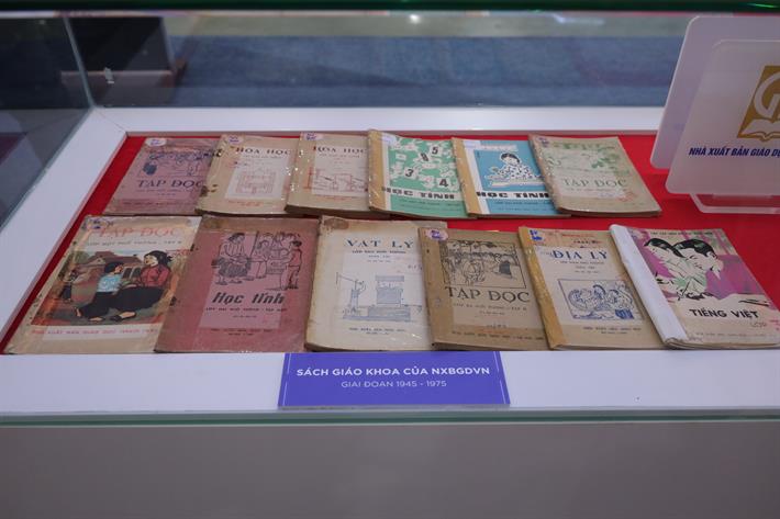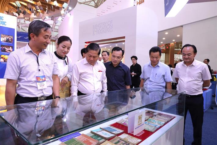 Thứ trưởng Lê Tấn Dũng kiểm tra gian trưng bày sách giáo khoa