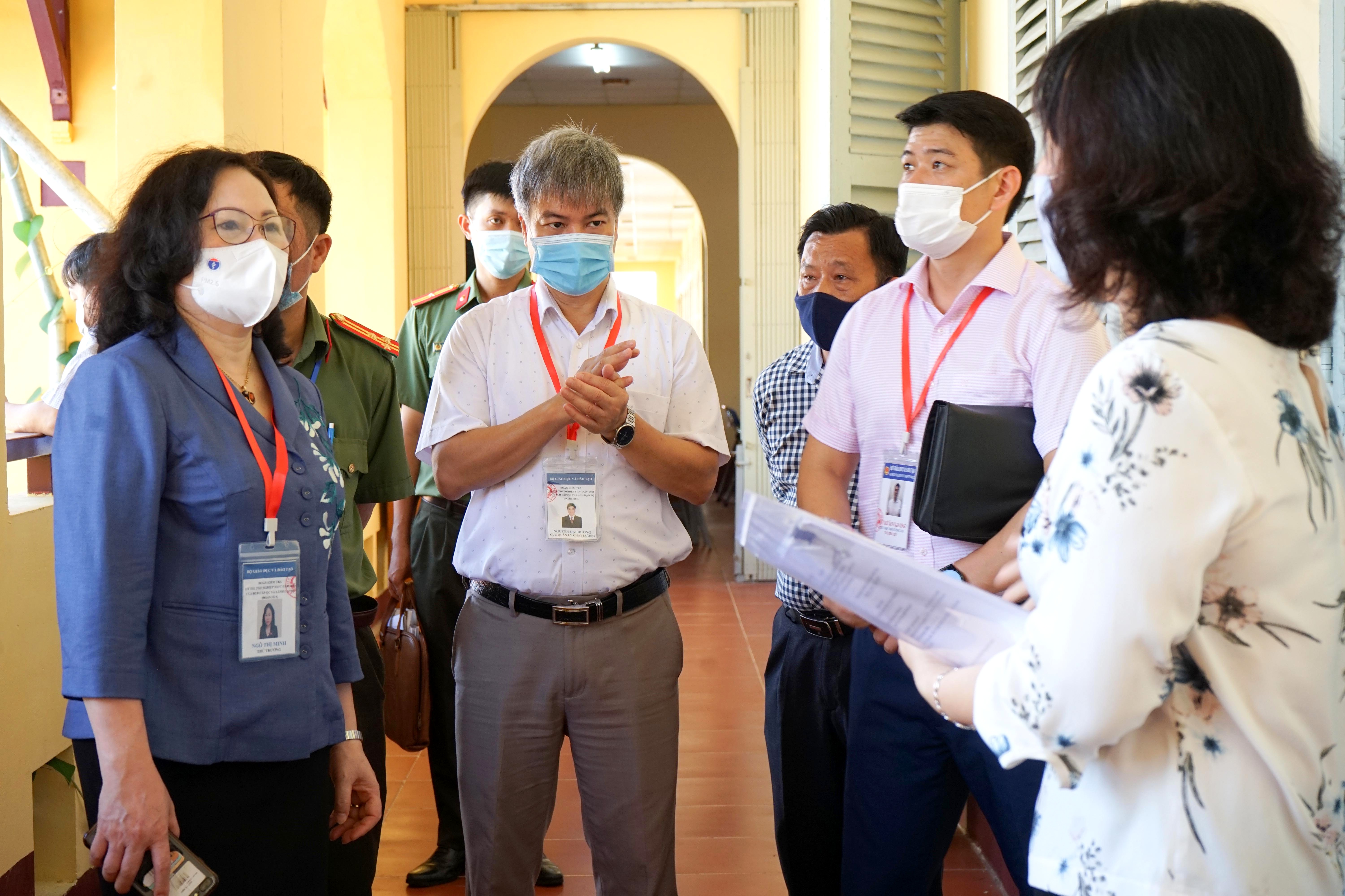 Đoàn kiểm tra BCĐ cấp quốc gia kỳ thi tốt THPT 2021 kiểm tra phòng thi tại điểm thi trường THPT Châu Văn Liêm, TP Cần Thơ