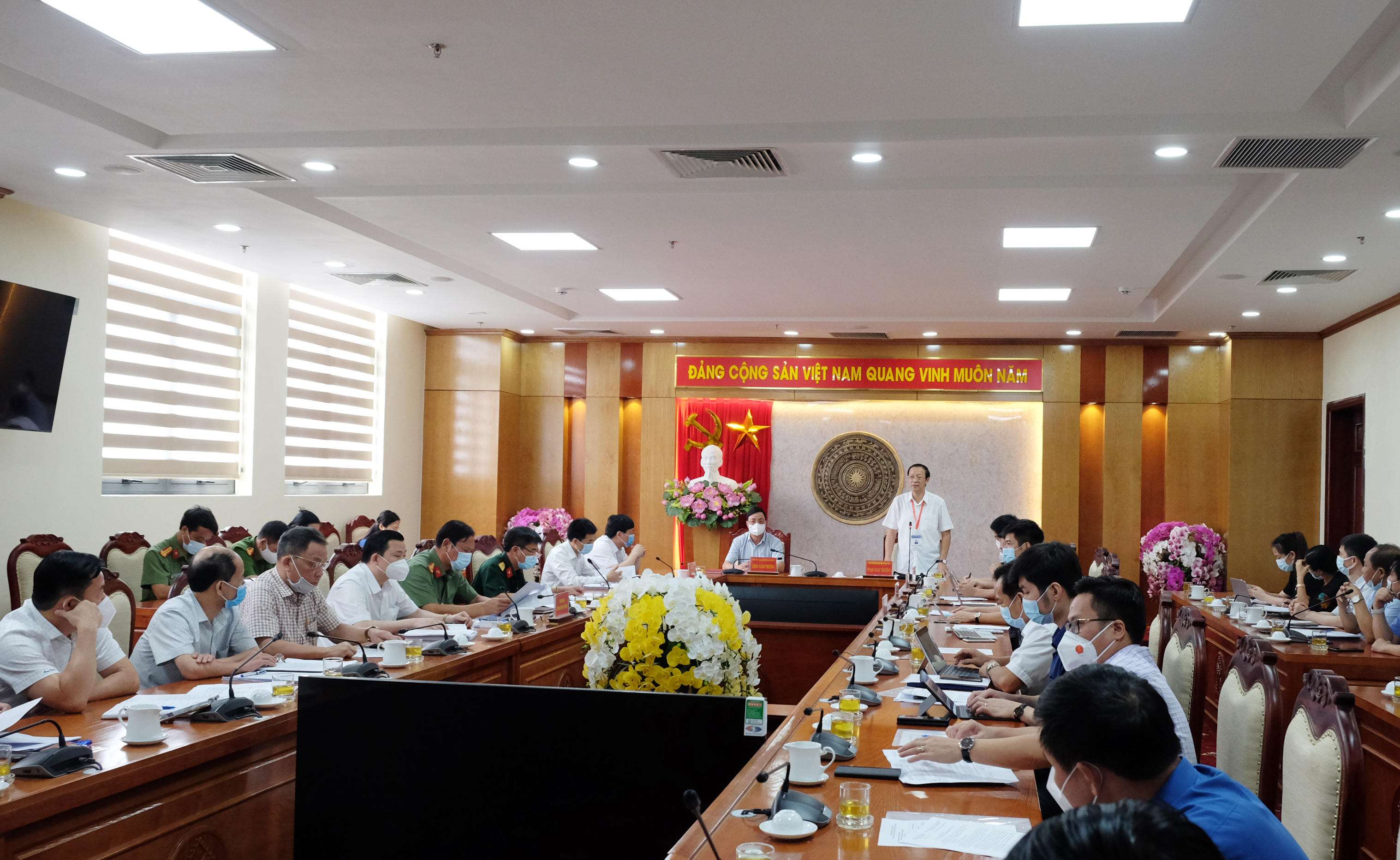 “Thái Nguyên hiện không có nhiều ca mắc Covid-19 nhưng nguy cơ dịch bệnh rất cao do có chuỗi liên kết với Bắc Ninh, Bắc Giang qua các khu công nghiệp. Do đó, không thể chủ quan trong làm thi”, Phó Chủ tịch thường trực UBND tỉnh Đặng Xuân Trường trao đổi tại buổi làm việc với đoàn kiểm tra của BCĐ thi cấp quốc gia và khẳng định Thái Nguyên sẽ chuẩn bị chu đáo, kỹ lưỡng cho Kỳ thi này.