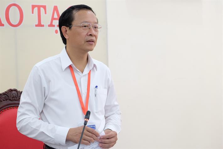 Giám đốc Sở GDĐT tỉnh Nam Định Cao Xuân Hùng báo cáo về công tác chuẩn bị cho kỳ thi của địa phương