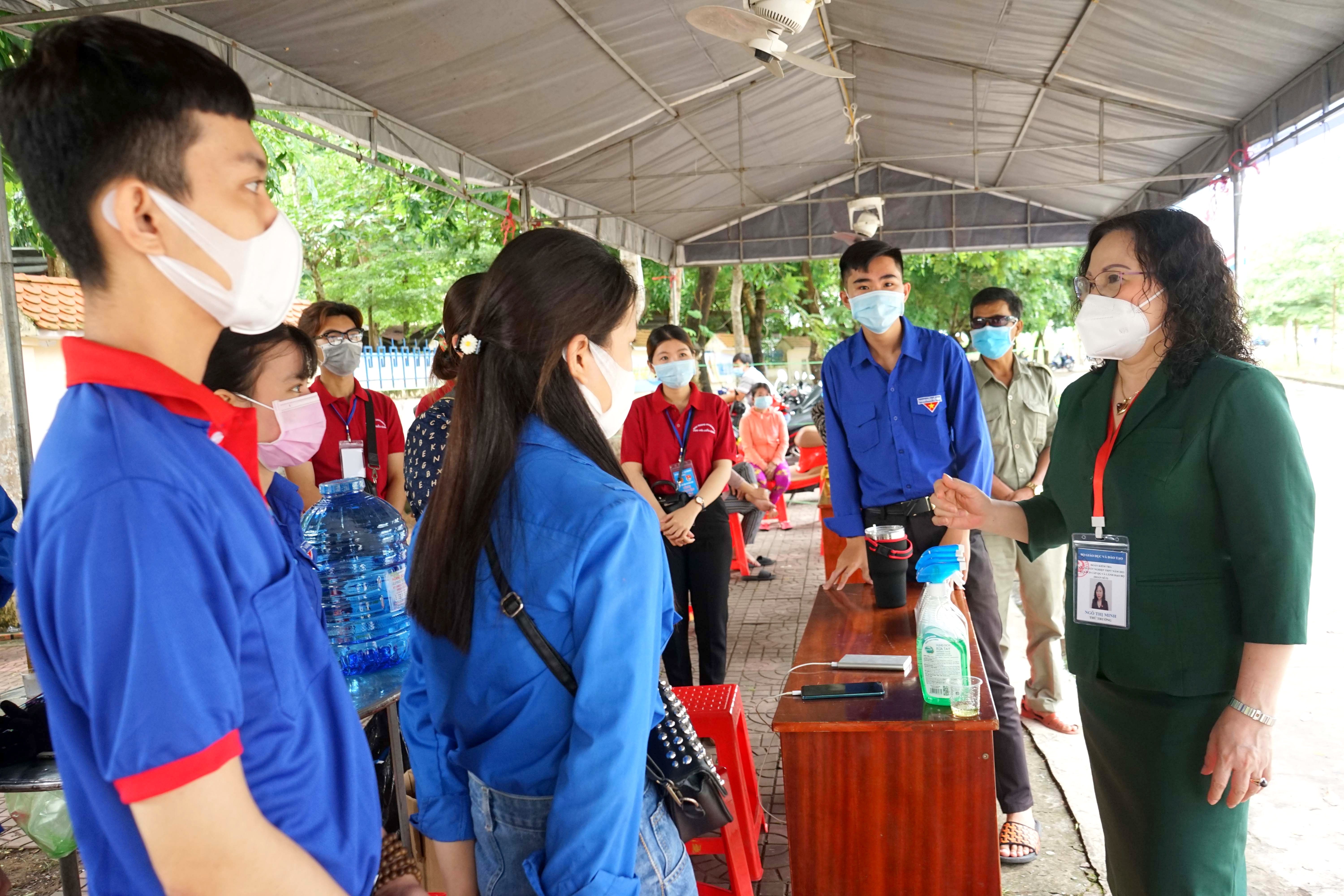 Thứ trưởng Ngô Thị Minh hỏi thăm lực lượng thanh niên tình nguyện tham gia hỗ trợ kỳ thi