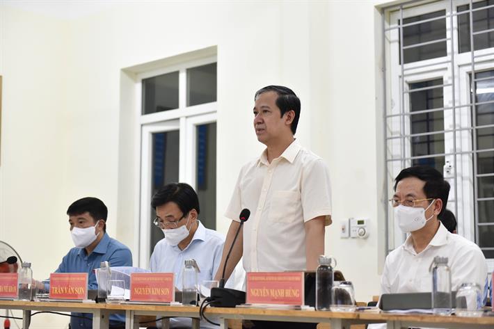 Bộ trưởng mong rằng, trong năm học đầy khó khăn, thách thức, tỉnh Thái Nguyên đã quan tâm thì sẽ tiếp tục quan tâm hơn nữa đến giáo dục, trong đó có quan tâm hỗ trợ các giáo viên, học sinh khó khăn do ảnh hưởng bởi dịch bệnh. Làm sao vừa bảo đảm mục tiêu an toàn phòng chống dịch, vừa hoàn thành mục tiêu kế hoạch năm học và bảo đảm chất lượng đào tạo.