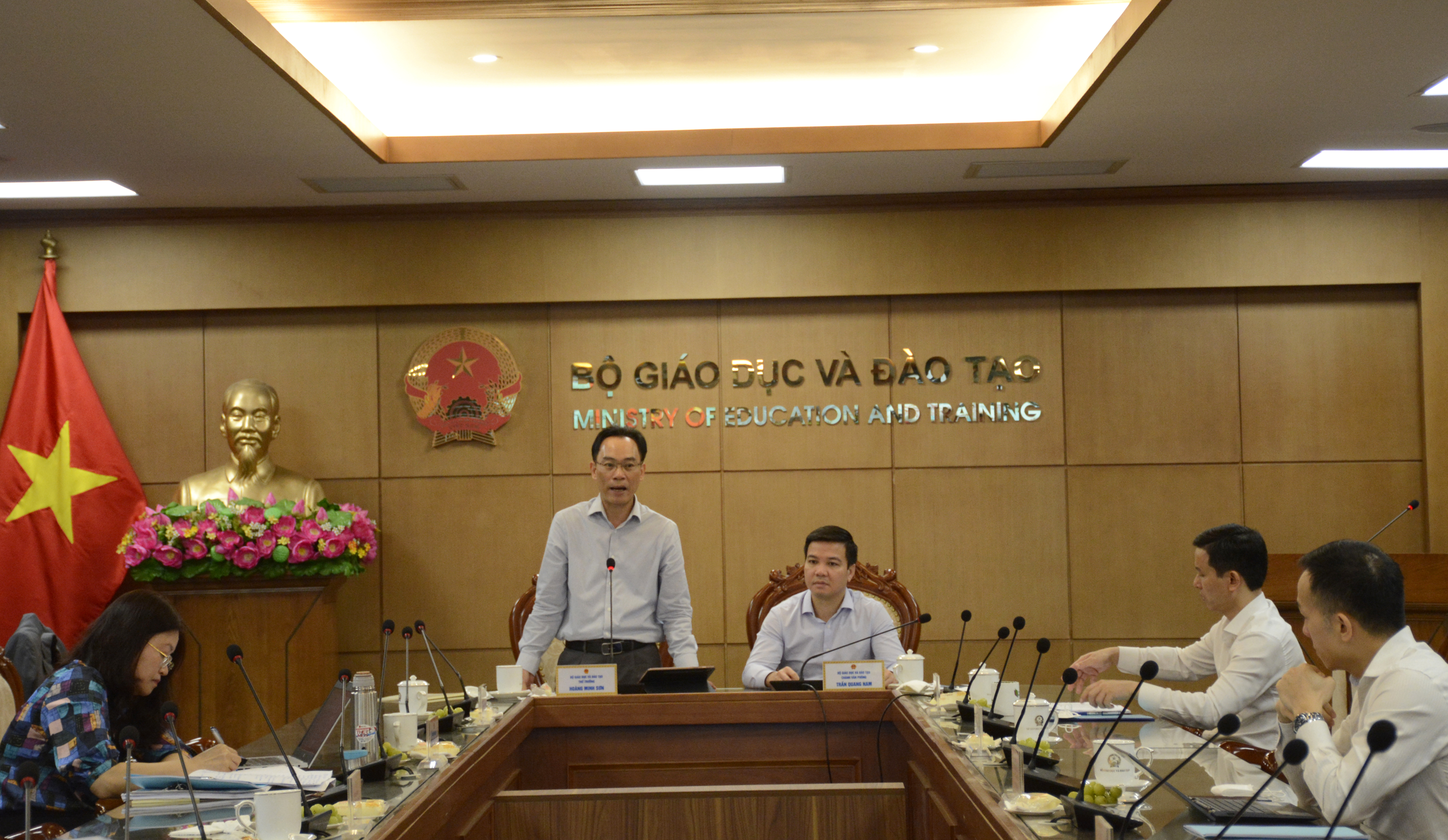 Việc quan tâm đầu tư hơn cho công nghệ thông tin, hạ tầng kết nối và chia sẻ nền tảng công nghệ, dữ liệu, tài nguyên số để dùng chung… cũng là nội dung được Thứ trưởng Hoàng Minh Sơn nhấn mạnh, mong muốn các đơn vị chú tâm thực hiện để hỗ trợ làm tốt công tác văn phòng nói riêng và các hoạt động chuyên môn khác nói chung của trường, của ngành.