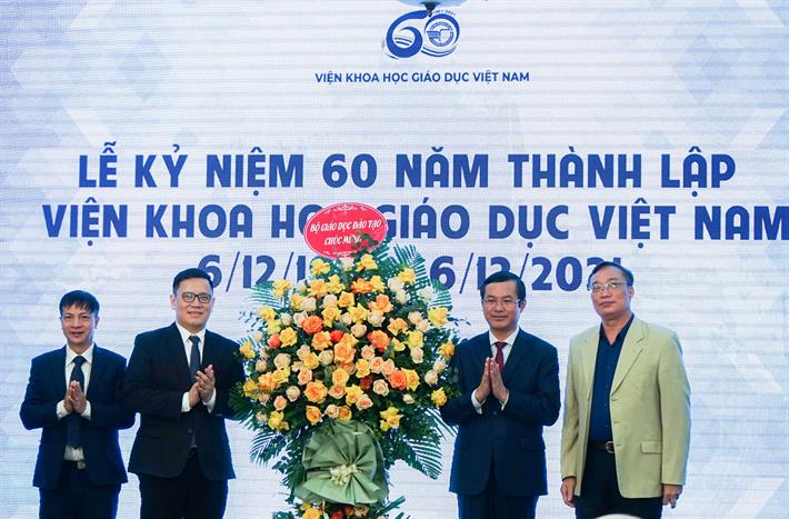 Thứ trưởng Nguyễn Văn Phúc tặng hoa chúc mừng Viện Khoa học Giáo dục Việt Nam