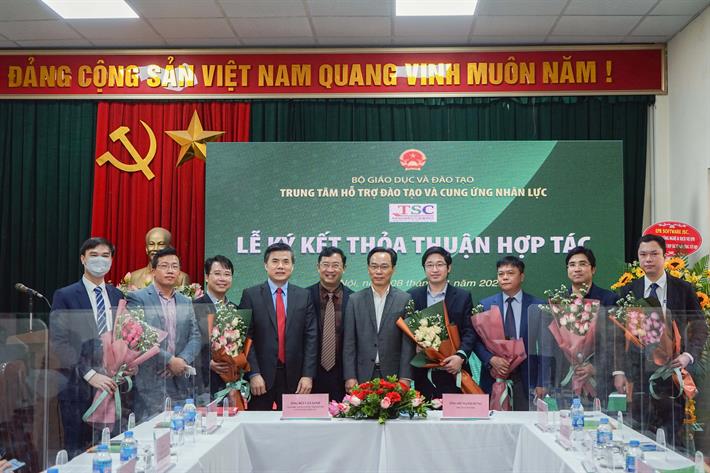Chứng kiến và phát biểu tại lễ ký kết, Thứ trưởng Bộ GDĐT Hoàng Minh Sơn mong muốn sau khi ký kết, sự hợp tác giữa Trung tâm Hỗ trợ đào tạo và Cung ứng nhân lực và các cơ sở giáo dục đại học, doanh nghiệp, tổ chức, đơn vị, với các Bộ ngành khác sẽ hiệu quả, thực chất, đóng góp vào sự nghiệp phát triển nguồn nhân lực trình độ cao, chất lượng cao, đem lại lợi ích cho các bên.