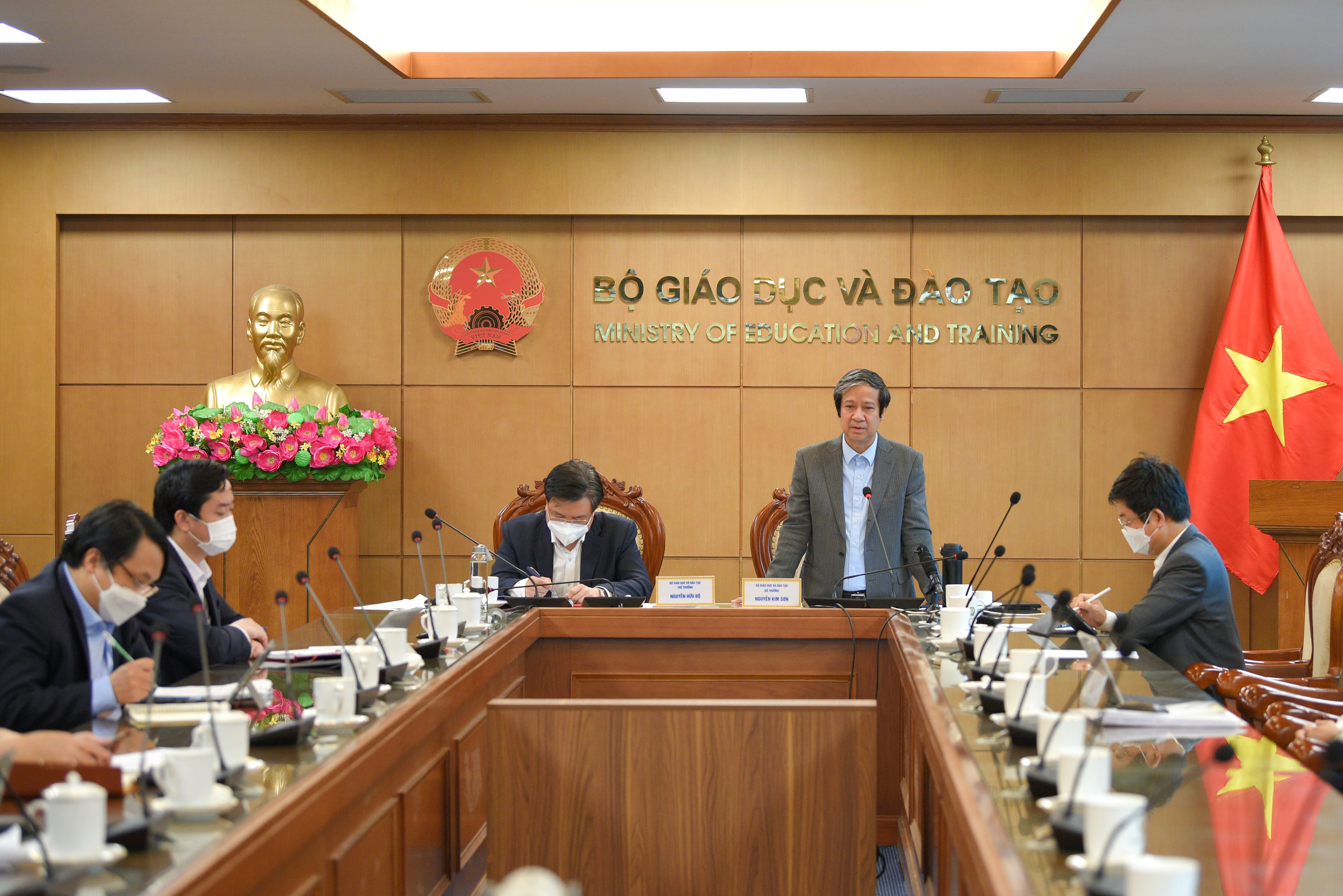 Trao đổi về vấn đề có tính thời sự hiện nay là phòng chống dịch và đưa học sinh quay trở lại học trực tiếp, Bộ trưởng đề nghị các địa phương kiên trì mục tiêu đưa học sinh quay trở lại trường sớm nhất có thể. Để làm được việc này, cần theo sát diễn biến dịch để có biện pháp kịp thời. Ở những nơi dịch bùng phát mạnh học sinh chuyển sang học trực tuyến, nhưng dịch giảm tới đâu lại huy động học sinh quay trở lại trường tới đó. Ngành Giáo dục các địa phương cần phối hợp với ngành Y tế để thực hiện trên tinh thần bình tĩnh, thực tiễn, thích ứng an toàn. Đồng thời, tiếp tục thúc đẩy tiến độ nhanh nhất tiêm vắc xin cho trẻ từ 5-11 tuổi.