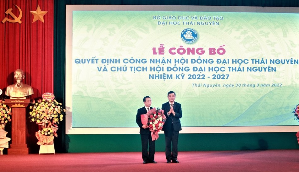 Tại buổi lễ, đại diện Vụ Tổ chức Cán bộ, Bộ GDĐT đã công bố quyết định số 709/QĐ-BGDĐT, ngày 14/03/2022 của Bộ GDĐT về việc công nhận Hội đồng Đại học Thái Nguyên, nhiệm kỳ 2022-2027 và Quyết định số 710/QĐ-BGDĐT, ngày 14/03/2022 của Bộ GDĐT về việc công nhận Chủ tịch Hội đồng Đại học Thái Nguyên nhiệm kỳ 2022-2027.