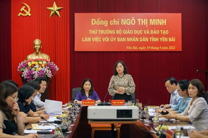 Đánh giá cao những kết quả mà ngành Giáo dục tỉnh Yên Bái đạt được trong thời gian qua, Thứ trưởng Ngô Thị Minh đề nghị trong thời gian tới, ngành giáo dục tỉnh Yên Bái cần tham mưu cho UBND tỉnh ban hành những chính sách cụ thể, kịp thời nhằm tháo gỡ khó khăn, vướng mắc đối với giáo dục của tỉnh.