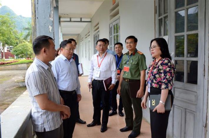 Thứ trưởng nhấn mạnh công tác đảm bảo an toàn phòng cháy chữa cháy, phòng chống thiên tai, đảm bảo sức khoẻ, tâm lý cho thí sinh trước kỳ thi. Đồng thời, tỉnh cũng cần kiểm tra kỹ hơn về cơ sở vật chất, đảm bảo hệ thống điện từng điểm thi; bố trí phòng thi hợp lý; cẩn trọng tối đa trong in sao đề thi, làm phách, niêm phong khu vực in sao đề thi.