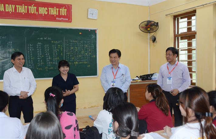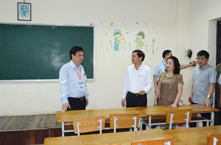 Thứ trưởng Nguyễn Hữu Độ kiểm tra tại điểm chấm thi Trường THPT Chuyên Biên Hòa, tỉnh Hà Nam