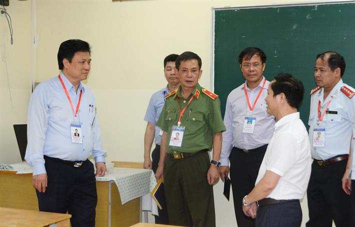 Thứ trưởng Nguyễn Hữu Độ kiểm tra tại Điểm thi Trường THPT Thăng Long