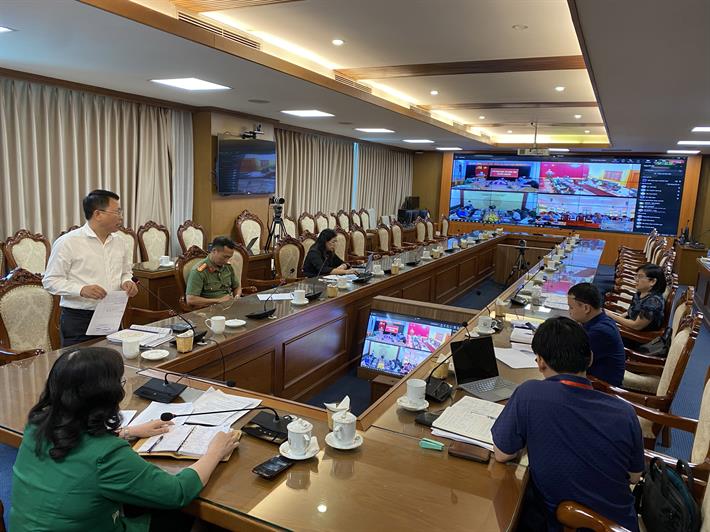 Quang cảnh buổi làm việc trực tuyến với các địa phương