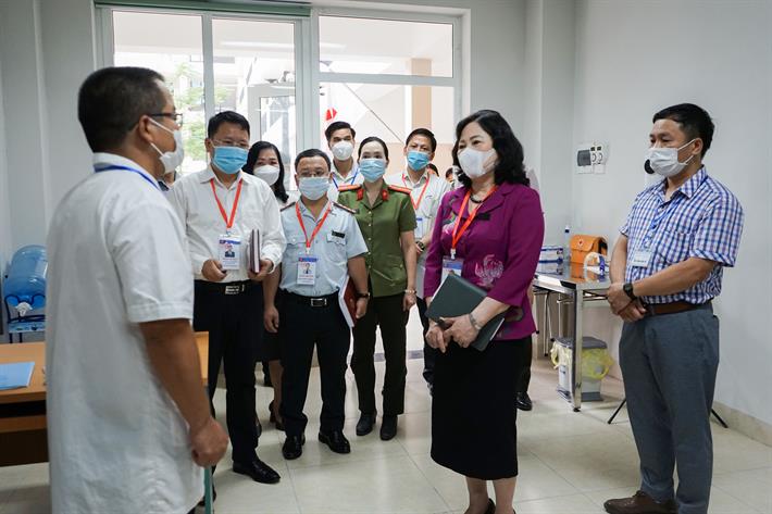 Thứ trưởng Ngô Thị Minh kiểm tra phòng y tế phục vụ điểm thi