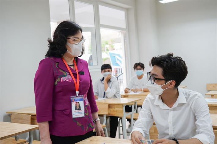 Trước giờ thi môn Ngữ văn, Thứ trưởng Ngô Thị Minh động viên và lưu ý thí sinh thực hiện đúng quy chế thi theo hướng dẫn của giám thị. Nhấn mạnh đề thi nằm trong chương trình đã được học, Thứ trưởng chúc các em thí sinh bình tĩnh để làm bài thật tốt.