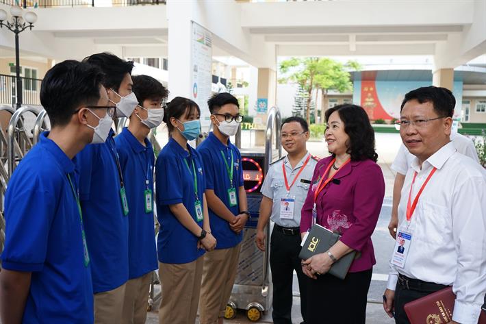Thứ trưởng Ngô Thị Minh động viên lực lượng thanh niên tình nguyện phát huy tinh thần để hỗ trợ thí sinh