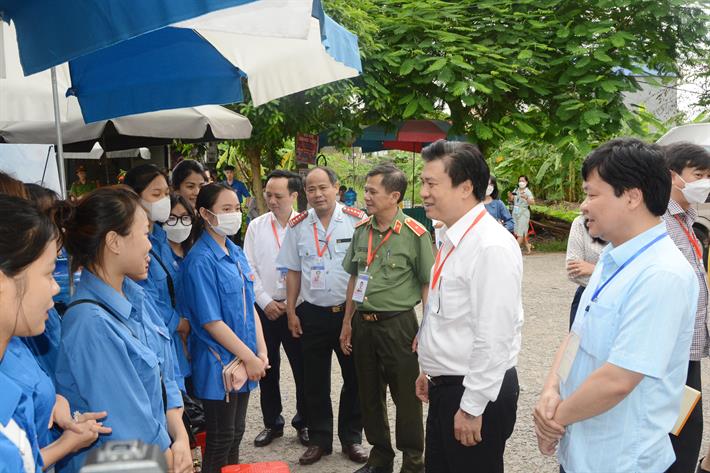 Tại đây, Thứ trưởng đã đi thị sát 02 điểm thi là Trường THPT Lê Hồng Phong (TP Phổ Yên) và Trường THPT Gang Thép (TP Thái Nguyên), động viên, chia sẻ với các thí sinh, cán bộ, các lực lượng an ninh, tình nguyện đảm bảo an toàn, nghiêm ngặt cho kỳ thi. Thứ trưởng đánh giá cao sự chủ động, sẵn sàng các phương án phòng bị, chuẩn bị trong công tác tổ chức tại các điểm thi.