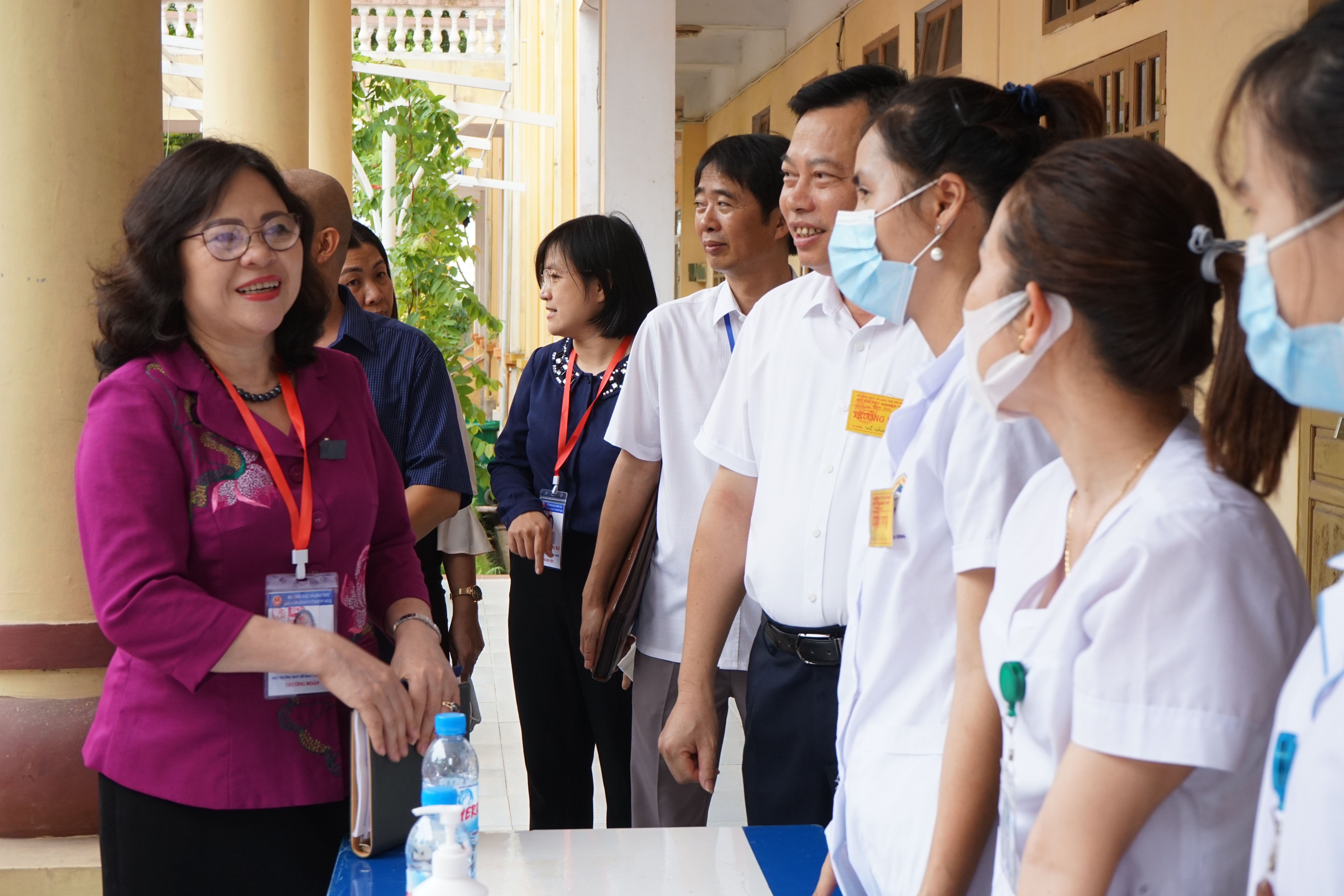 Thứ trưởng Ngô Thị Minh động viên các cán bộ Y tế tham gia phối hợp làm công tác thi tại tỉnh Hải Dương