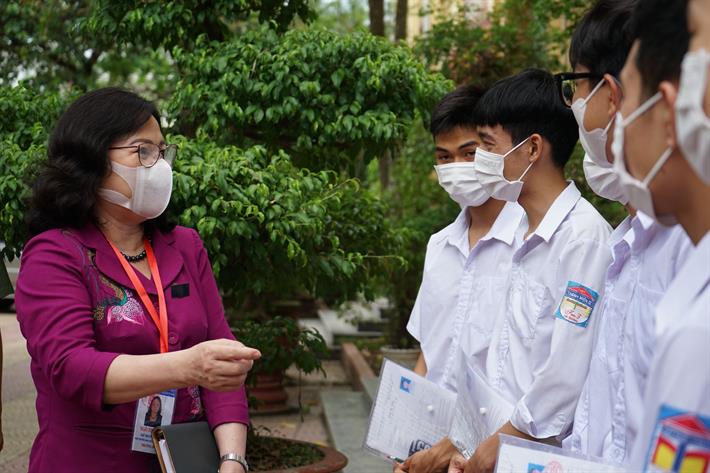 Thứ trưởng Ngô Thị Minh động viên thí sinh Hải Dương trước giờ thi