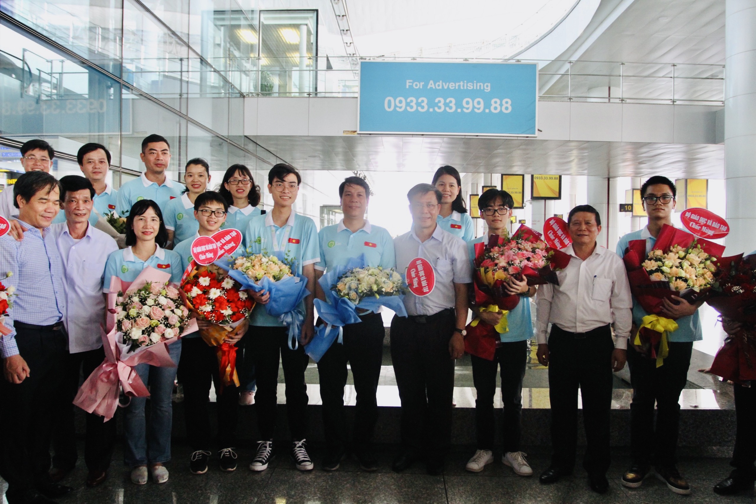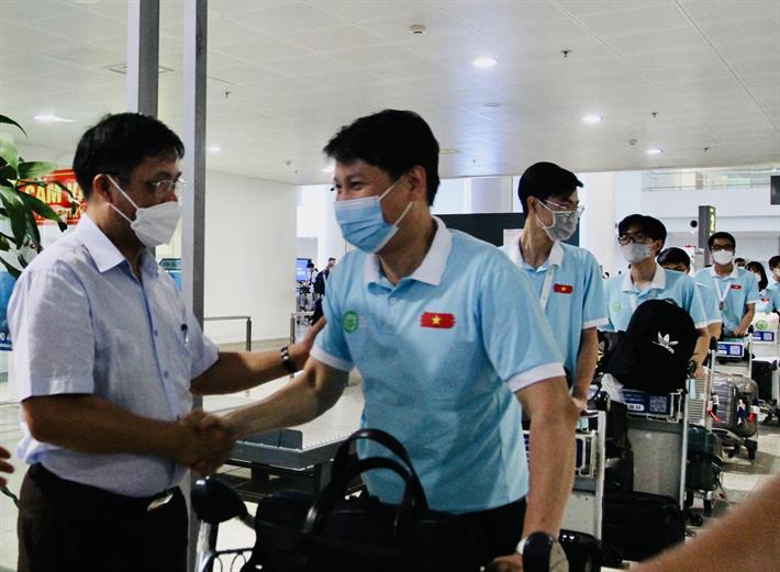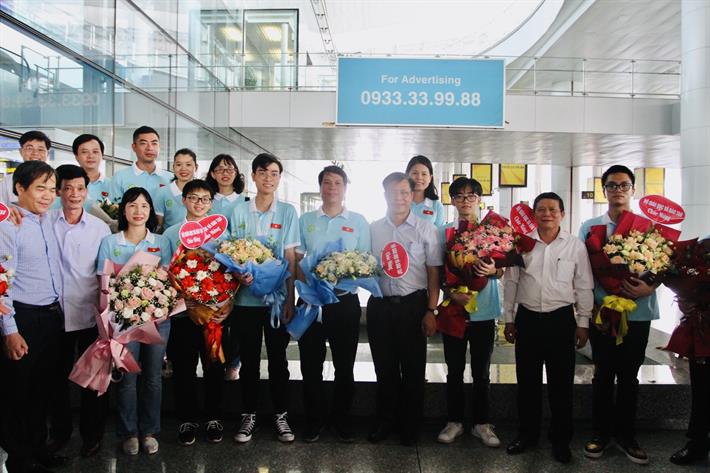 Phó Cục trưởng Phụ trách Cục Quản lý chất lượng Lê Mỹ Phong đón đội tuyển học sinh Việt Nam dự Olympic Sinh học 2022 về nước tại sân bay Nội Bài