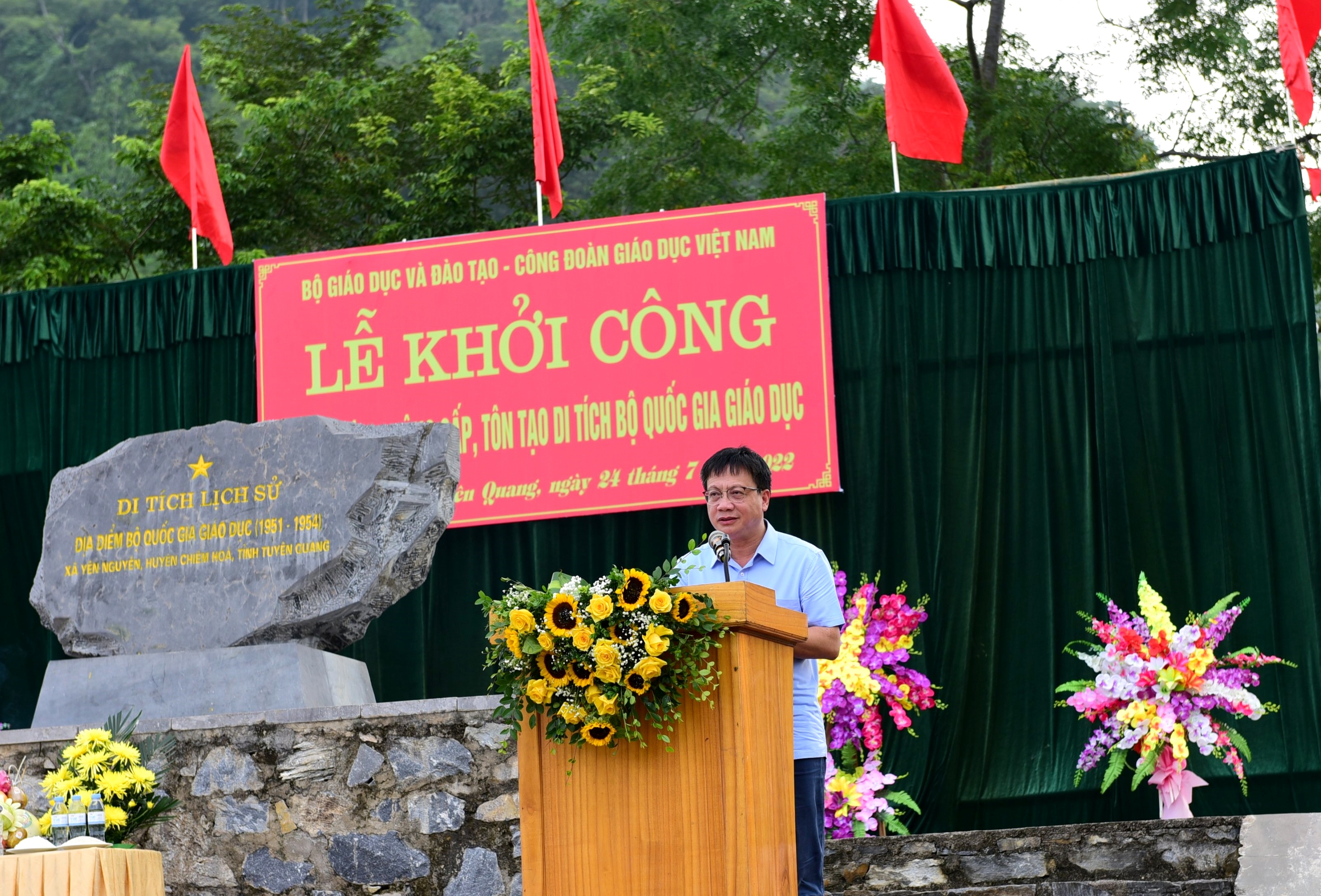 Phát biểu tại Lễ khởi công, đồng chí Nguyễn Ngọc Ân, Chủ tịch Công đoàn Giáo dục Việt Nam nhấn mạnh: "Di tích Bộ Quốc gia Giáo dục là một trong những địa chỉ đỏ của ngành Giáo dục, là cội nguồn để các thế hệ nhà giáo hướng về. Công trình thể hiện tâm nguyện của các thế hệ nhà giáo, cán bộ quản lý giáo dục, là quyết tâm của Bộ Giáo dục và Đào tạo và Công đoàn Giáo dục Việt Nam với sự chung tay đóng góp của đội ngũ nhà giáo, người lao động cả nước".