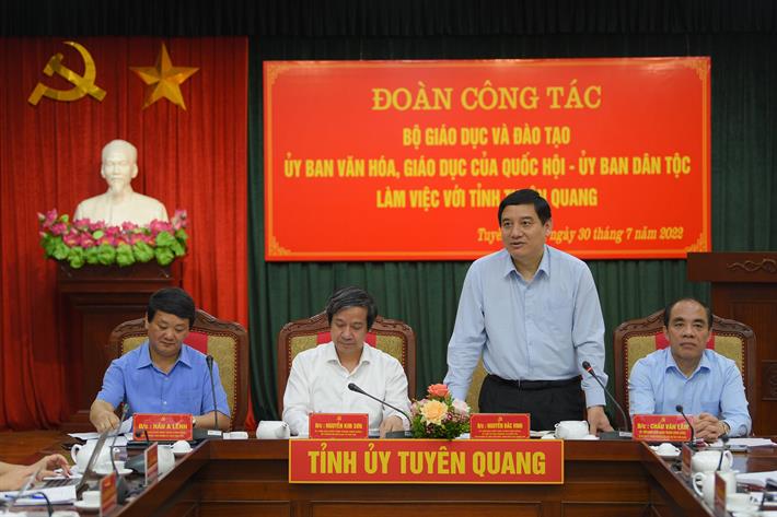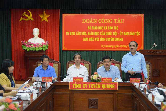 Với những mục tiêu, phương hướng đặt ra nhằm phát triển giáo dục và đào tạo, qua đó góp phần phát triển kinh tế - xã hội địa phương, Bí thư Tỉnh ủy Tuyên Quang Chẩu Văn Lâm mong muốn, sẽ tiếp tục nhận được sự quan tâm, hỗ trợ của Bộ GDĐT, Ủy ban Văn hóa - Giáo dục, các Bộ, ngành liên quan, qua đó từng bước phát triển nguồn nhân lực có chất lượng cho tỉnh.