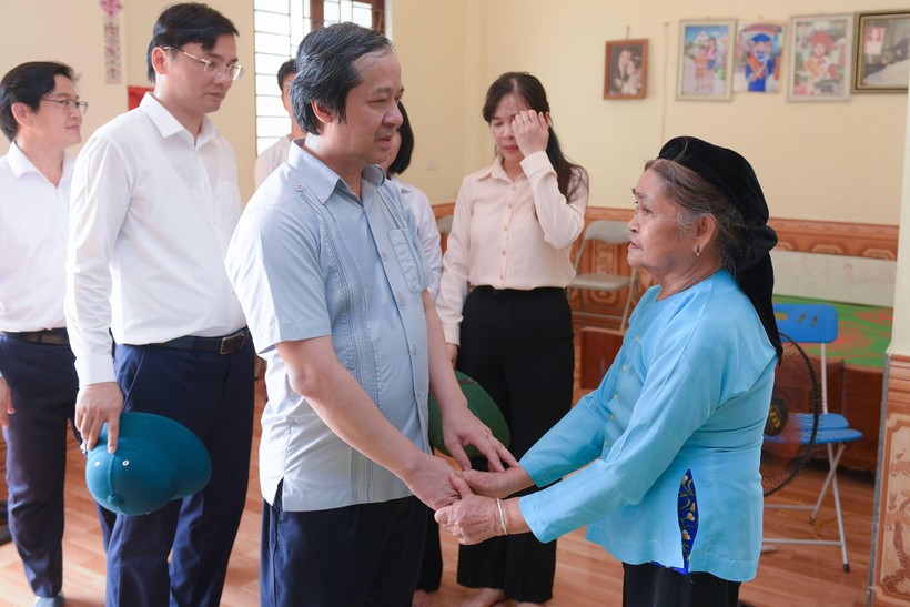 Tới thăm Khu di tích Bộ Quốc gia Giáo dục, Bộ trưởng Nguyễn Kim Sơn và đoàn công tác đã đến thăm hỏi, tri ân gia đình ông, bà Hứa Văn Huấn (thôn Khuôn Trú, Yên Nguyên) - nơi Bộ Quốc gia Giáo dục đặt trụ sở từ năm 1951 đến 1954.