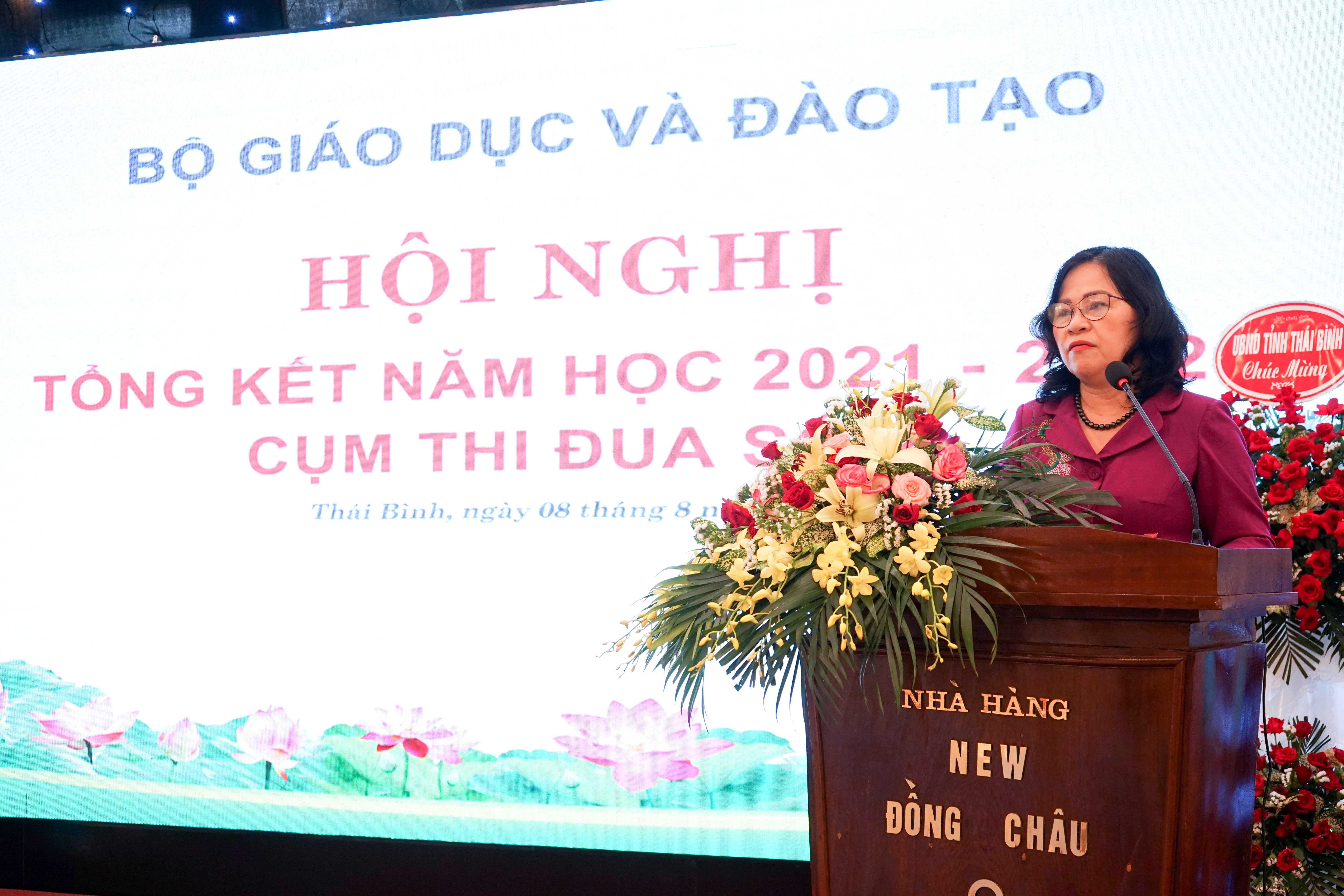 Phát biểu tại hội nghị, thay mặt lãnh đạo Bộ GDĐT Thứ trưởng Ngô Thị Minh biểu dương những kết quả đạt được của các địa phương trong Cụm thi đua số 2 trong năm học 2021-2022. Thứ trưởng đồng thời lưu ý một số nhiệm vụ, vấn đề mà các địa phương cần quan tâm trong thời gian tới.