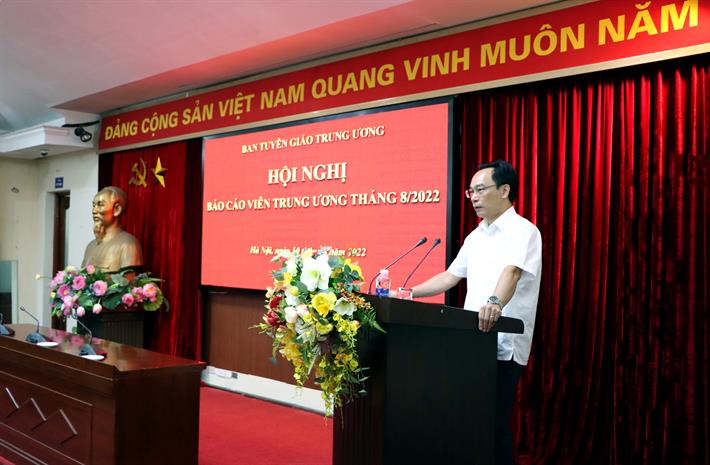 Thứ trưởng Hoàng Minh Sơn trình bày thông tin chuyên đề tại Hội nghị báo cáo viên Trung ương tháng 8