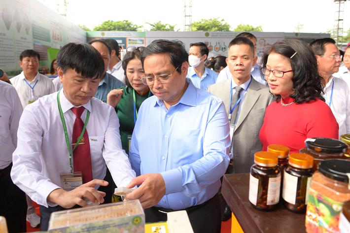 Thủ tướng Phạm Minh Chính tham quan các gian hàng giới thiệu sản phẩm trong khuôn khổ sự kiện