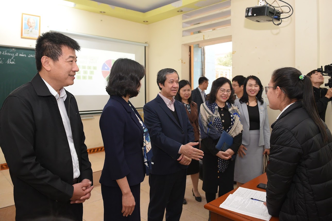 Bộ trưởng Nguyễn Kim Sơn thăm, trò chuyện với học sinh, giáo viên Trường Hữu nghị 80
