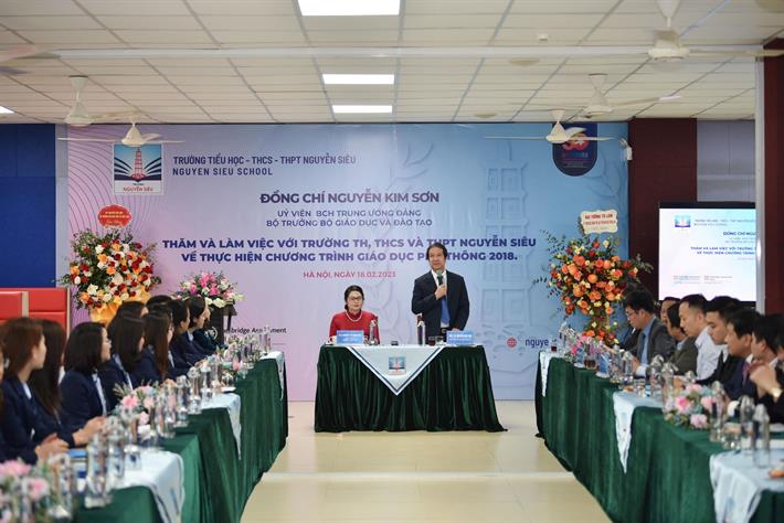 Với những lợi thế hiện có, Bộ trưởng mong muốn trường Nguyễn Siêu phát huy hết sức có thể, trong triển khai có đánh giá từng chặng, từng nội dung, từng vấn đề. Một số nội dung trường làm tốt như dạy học tích hợp nên được phát huy, lan tỏa kinh nghiệm cho các đơn vị khác.