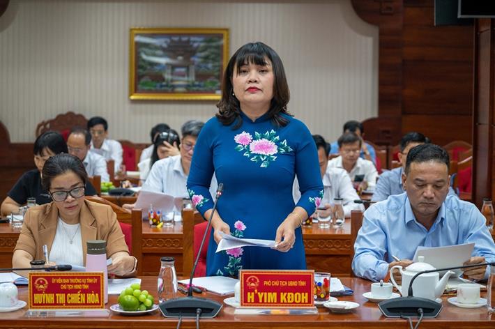 Bà H’Yim Kđoh, Phó Chủ tịch UBND tỉnh Đắk Lắk báo cáo tại cuộc làm việc