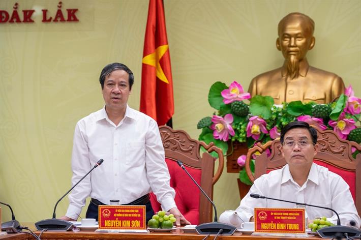Phát biểu tại buổi làm việc, Bộ trưởng Nguyễn Kim Sơn chia sẻ ấn tượng tốt và đánh giá cao những nỗ lực trong phát triển giáo dục và đào tạo của tỉnh Đắk Lắk, trong đó có sự quan tâm của lãnh đạo tỉnh.
