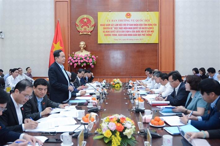 Phát biểu tại buổi làm việc, Bí thư tỉnh ủy Hưng Yên Nguyễn Hữu Nghĩa khẳng định: Tỉnh ủy, Hội đồng nhân dân, Ủy ban nhân dân tỉnh hết sức quan tâm trong công tác lãnh đạo, chỉ đạo và ban hành nhiều văn bản để triển khai Nghị quyết của Quốc hội về đổi mới chương trình, sách giáo khoa giáo dục phổ thông.