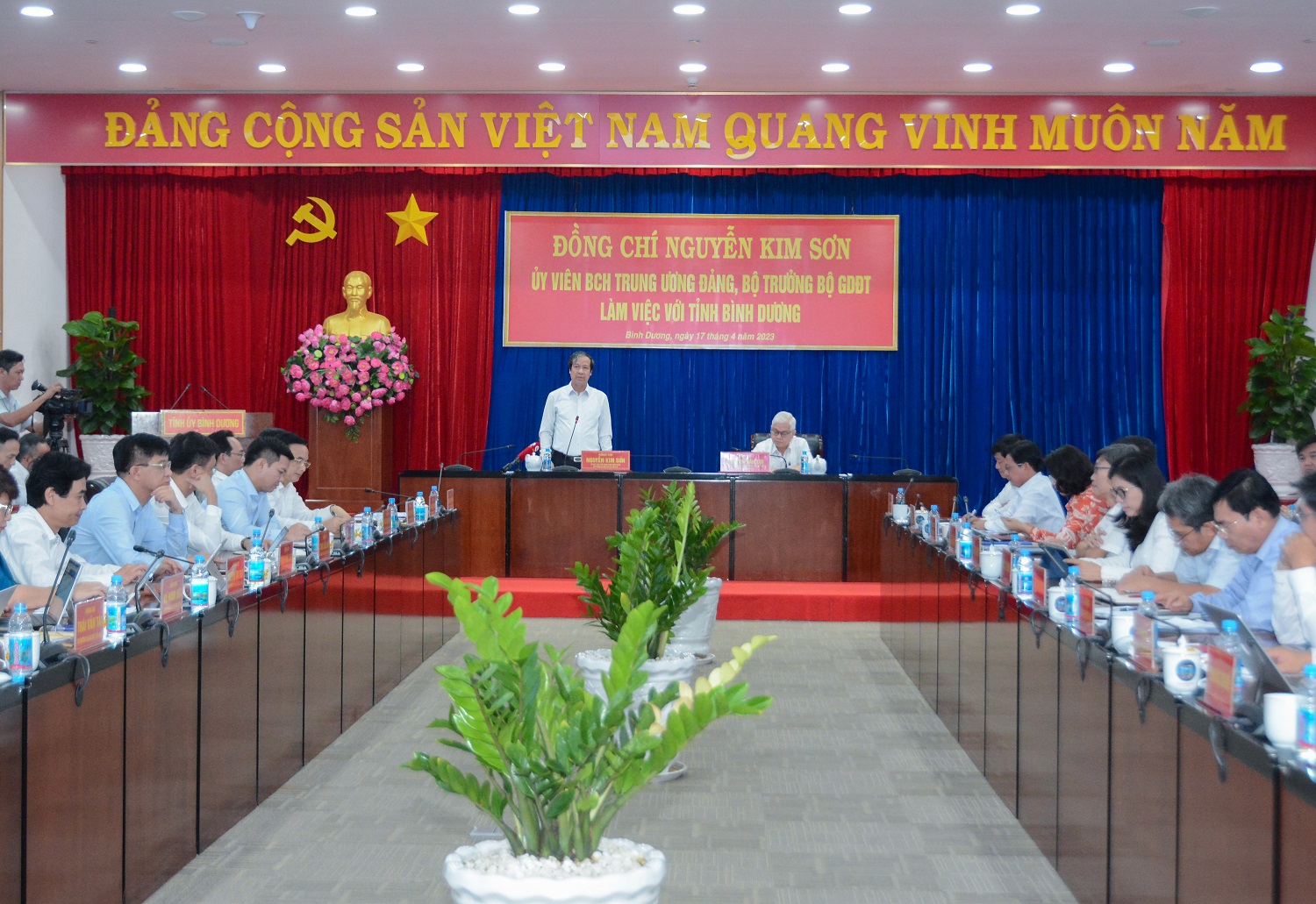 Đánh giá giáo dục và đào tạo Bình Dương thành tích nhiều, nỗ lực nhiều nhưng thách thức và vấn đề đặt ra cũng nhiều, theo Bộ trưởng Nguyễn Kim Sơn, để Bình Dương tiếp tục phát triển bền vững thì câu chuyện giáo dục và đào tạo trên địa bàn tỉnh cần giải quyết thấu đáo, bài bản, chiến lược.