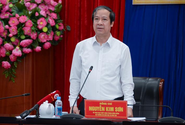 Bộ trưởng đề nghị tỉnh tiếp tục quan tâm sắp xếp mạng lưới, rà soát quy hoạch giáo dục các trường phổ thông, đại học, nâng cao chất lượng các bậc học; tiếp tục đẩy mạnh xã hội hoá, chăm lo, tạo điều kiện gắn với tăng cường kiểm soát hệ thống ngoài công lập, đảm bảo an toàn và chất lượng giáo dục.