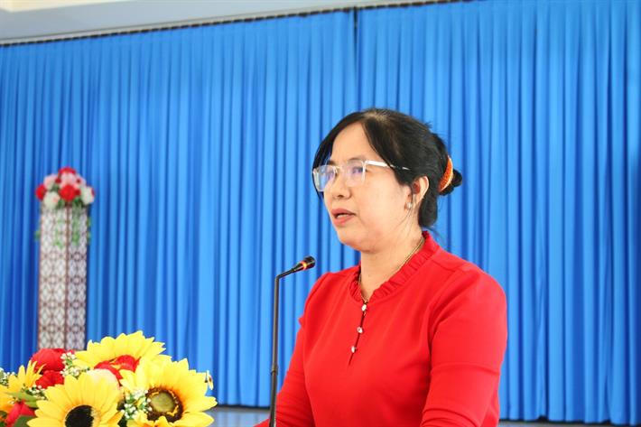 Giám đốc Sở GDĐT Trà Vinh Nguyễn Thị Bạch Vân báo cáo tình hình giáo dục địa phương