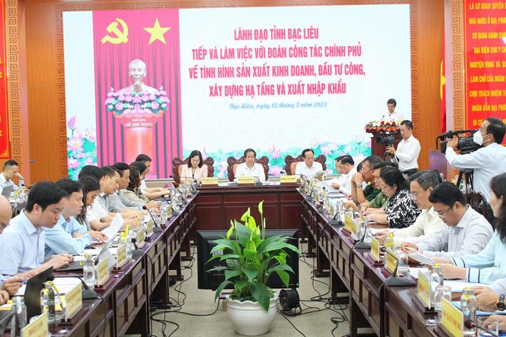 Làm việc với đoàn có Phó Bí thư Thường trực Tỉnh uỷ Bạc Liêu Lê Thị Ái Nam; Chủ tịch UBND tỉnh Bạc Liêu Phạm Văn Thiều; lãnh đạo Tỉnh uỷ, HĐND, UBND, các sở, ngành tỉnh Bạc Liêu.