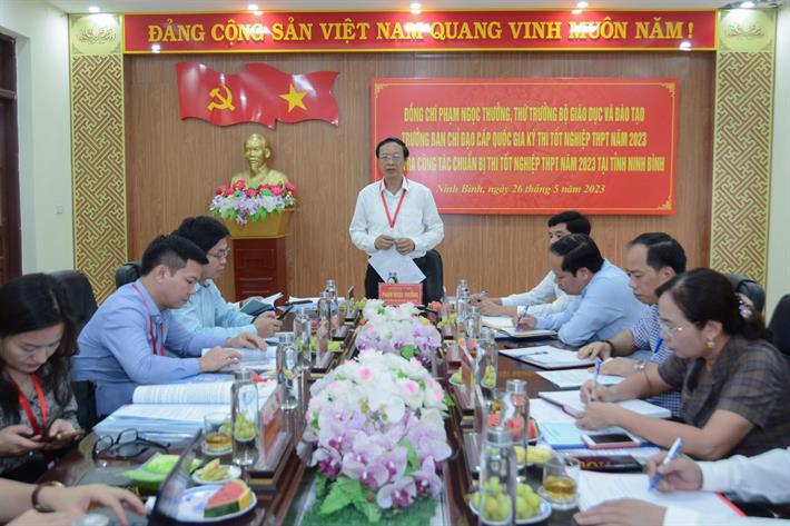 Mặc dù quy mô thí sinh dự thi của tỉnh Ninh Bình ở mức trung bình, song theo Thứ trưởng, dù là quy mô nào thì sự rủi ro là như nhau; do đó, tỉnh cần xác định rõ tính chất quan trọng của kỳ thi để tổ chức đảm bảo khách quan, công bằng, trung thực, nghiêm túc.