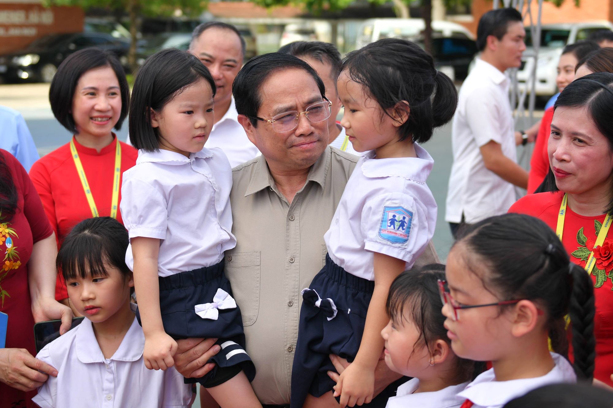 Gặp gỡ, trò chuyện với các em học sinh Trường phổ thông Hermann Gmeiner Hà Nội, Thủ tướng Phạm Minh Chính ân cần hỏi thăm sức khoẻ, tình hình học tập của các em. Thủ tướng mong các em mạnh khoẻ, chăm ngoan, học giỏi, nghe lời thầy cô, làm những điều tốt lành và trưởng thành.