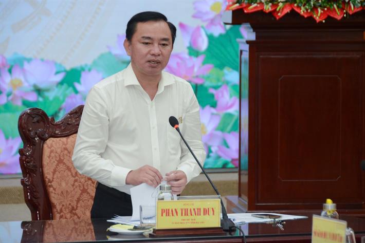 Ông Phan Thanh Duy, Phó Chủ tịch UBND tỉnh, Trưởng Ban Chỉ đạo thi tỉnh Bạc Liêu trao đổi tại buổi làm việc