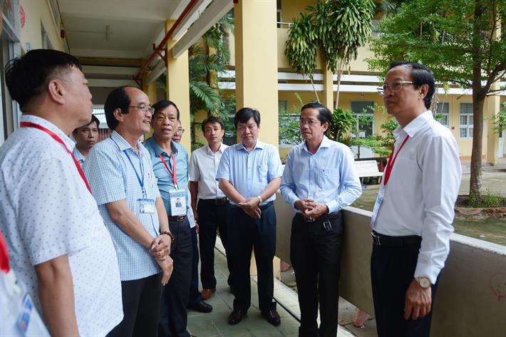 Thứ trưởng Phạm Ngọc Thưởng kiểm tra công tác chuẩn bị tại Điểm thi Trường THPT Hồ Thị Kỷ, Cà Mau