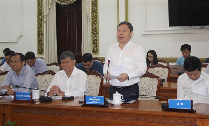 Phó Chủ tịch UBND TP HCM Dương Anh Đức, Trưởng Ban Chỉ đạo thi TP HCM trao đổi tại buổi làm việc